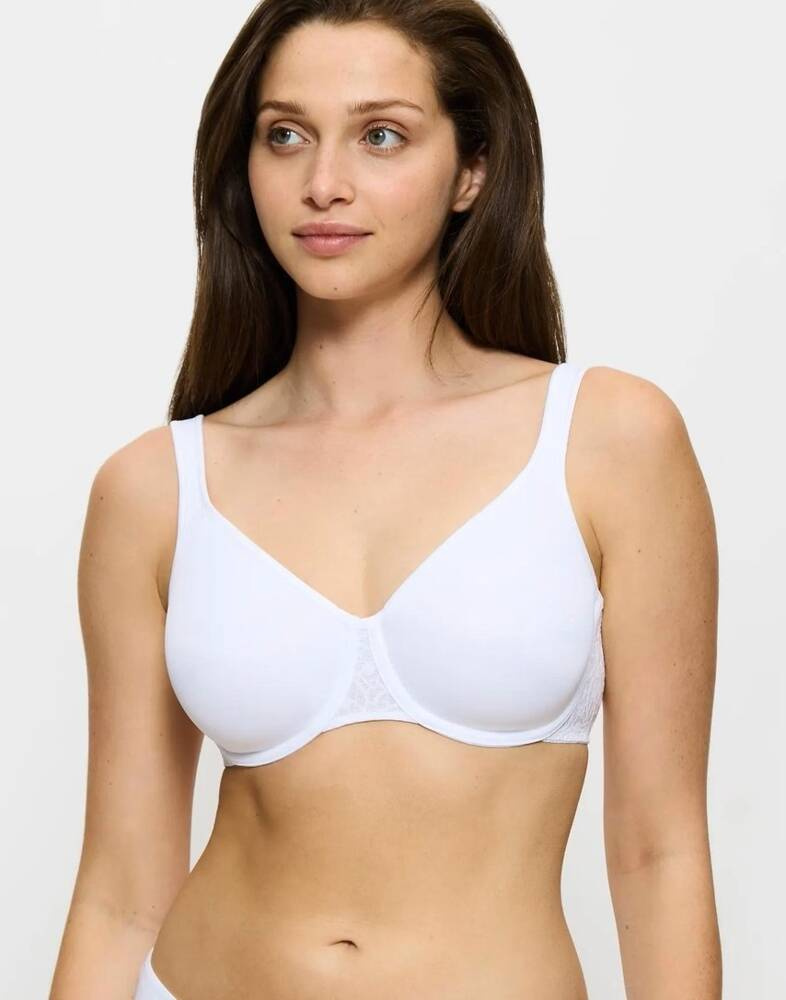 Un sutien cu cupe moi, cu sârmă reduce vizual bustul cu o mărime. Cupele netede, formate termic, modelează perfect bustul. Firele se adaptează perfect la mișcarea corpului. Bretelele lărgite oferă suport suplimentar și confort la purtare.