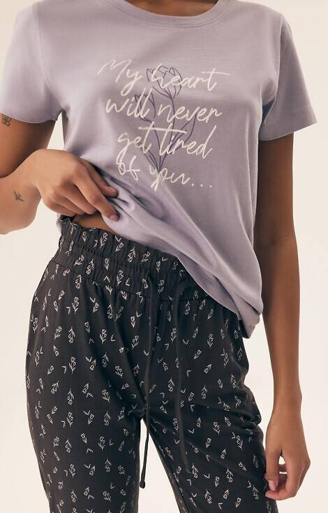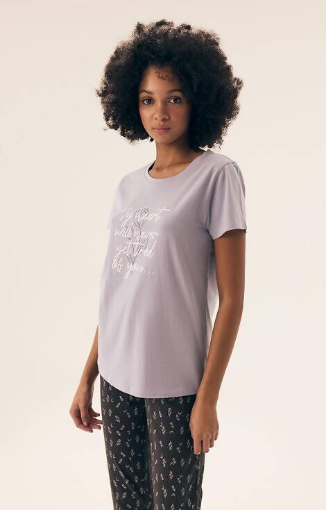 Pijamale de damă cu mâneci scurte. Tricou largi, cu imprimeu.