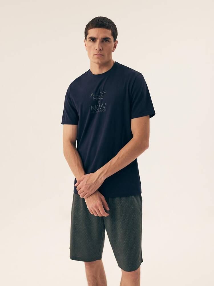 Pijamale pentru bărbați din bumbac de înaltă calitate. Tricou cu maneci scurte si imprimeu.
