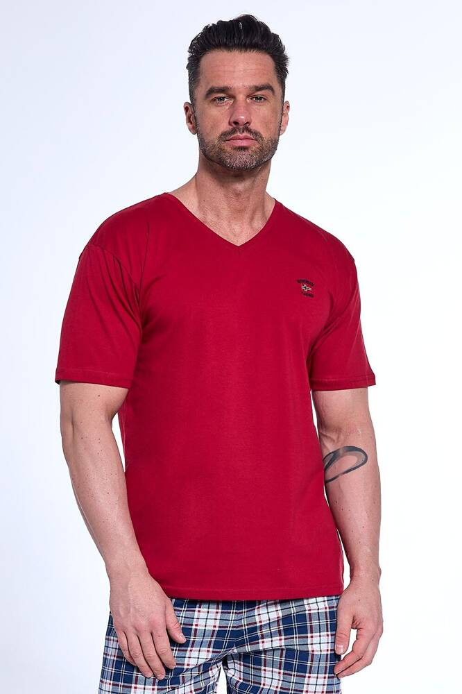 Pijamale pentru bărbați din bumbac de înaltă calitate. Tricou cu maneci scurte, decolteu in V.
