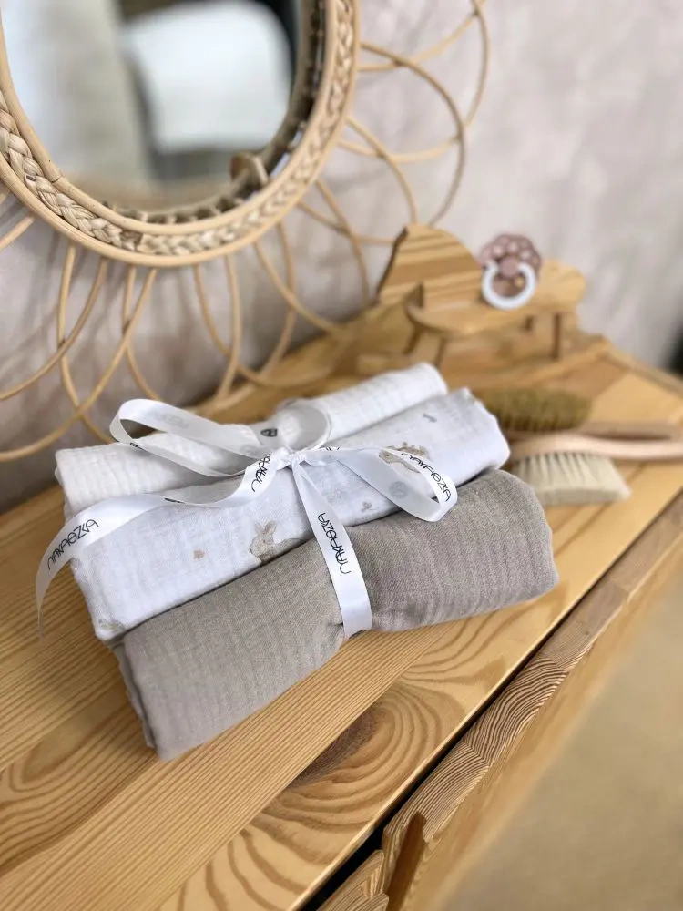 - Scutec 65x65cm (+/- 3cm) 100% muselina 3 scutece incluse