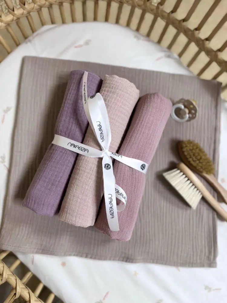 - Scutec 65x65cm (+/- 3cm) 100% muselina 3 scutece incluse