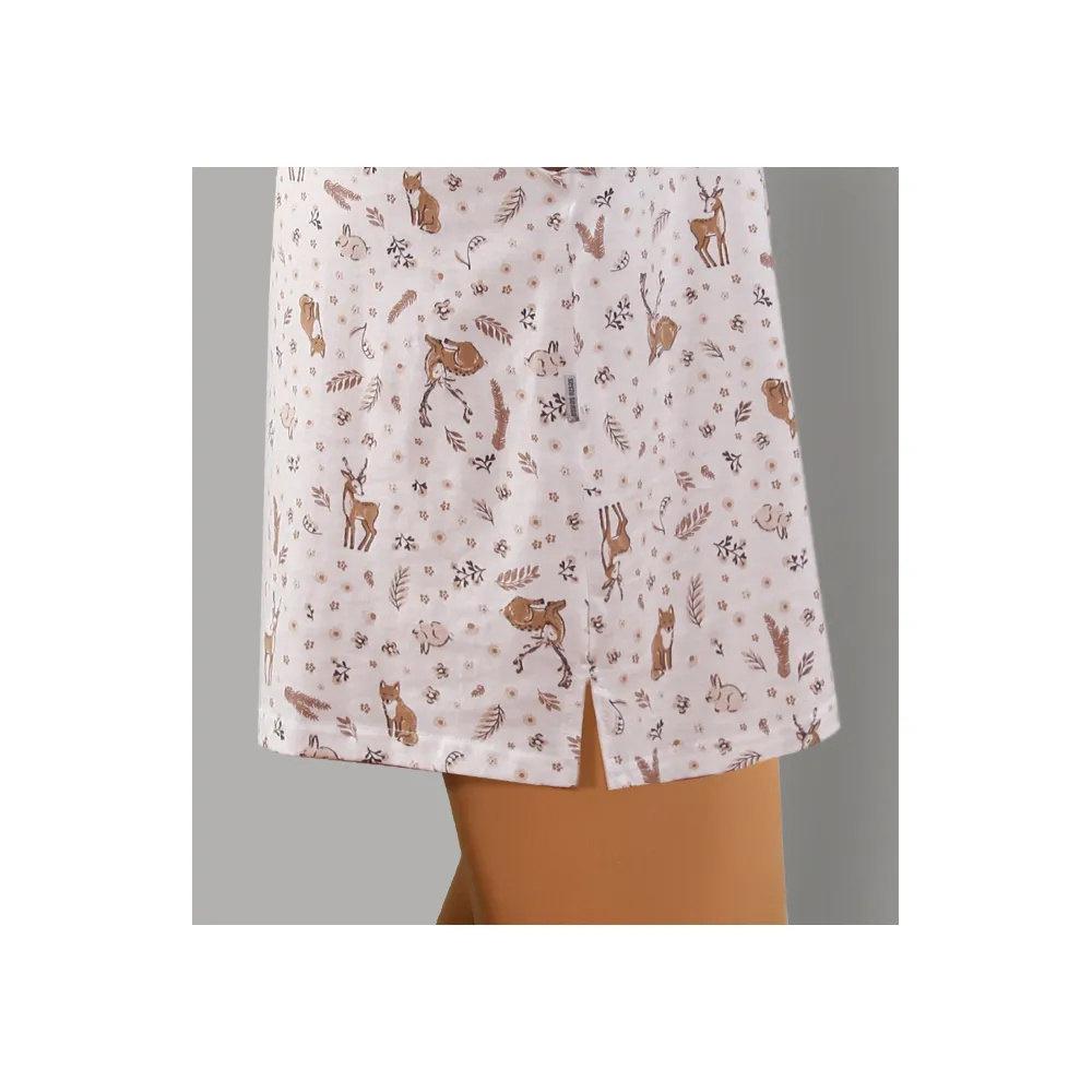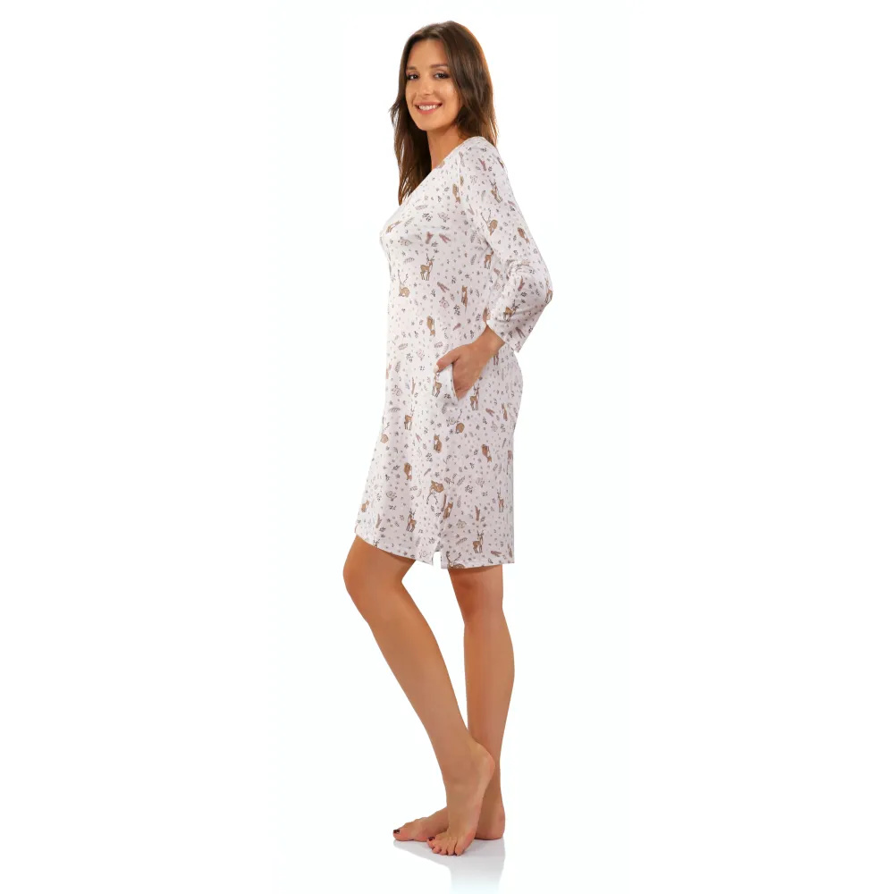 Cămașa are două buzunare laterale și fante laterale. Model cu maneci 3/4 lungime. Perfect pentru dormit pentru femei de toate vârstele. De asemenea, va funcționa ca o ținută confortabilă de acasă.