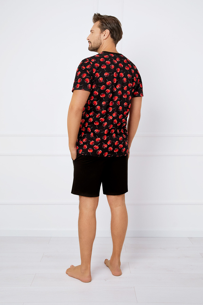 Cherry Pijama cu mânecă scurtă pentru bărbați, pantaloni scurți Italian Fashion - print/negru