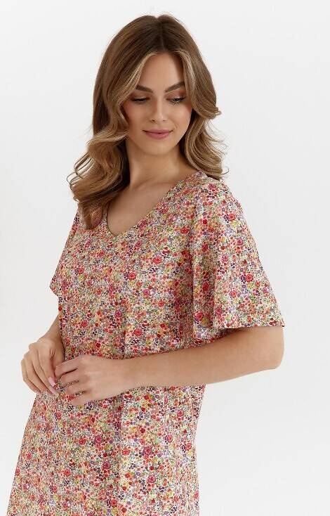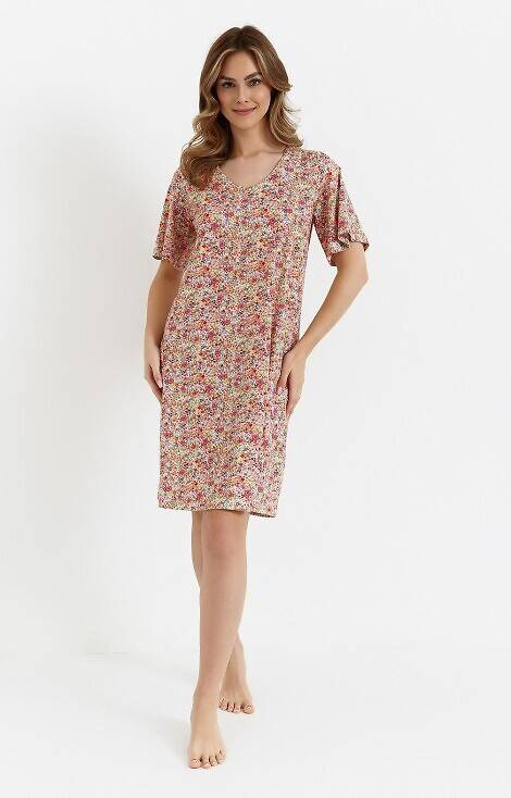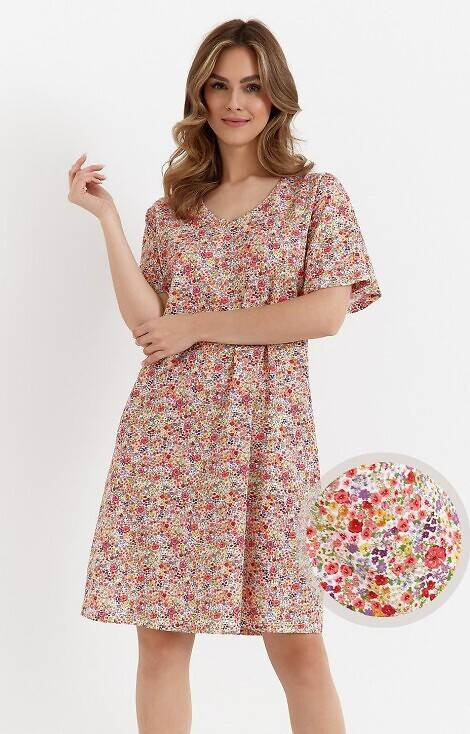 Cămașă de damă cu mâneci scurte din bumbac de calitate superioară cu flori. Extrem de placut pentru piele.