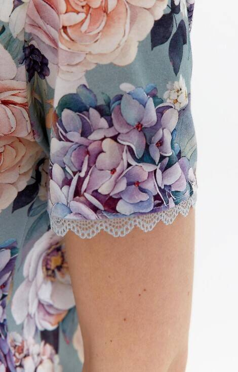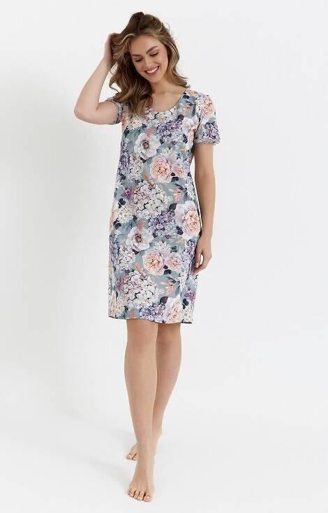 Cămașă de damă cu mâneci scurte din bumbac de calitate superioară cu flori. Extrem de placut pentru piele.