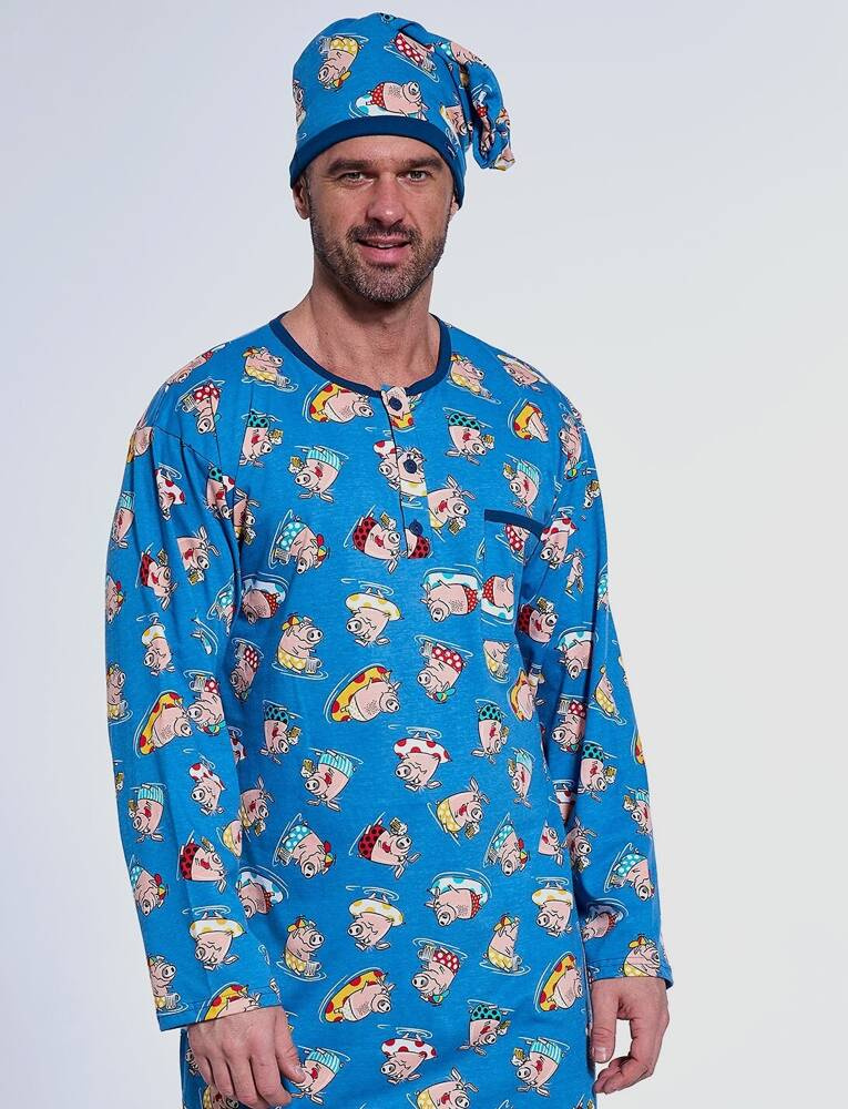 Cămașă de noapte pentru bărbați cu mâneci lungi. Fabricat din bumbac de înaltă calitate, cu imprimeu decorativ colorat