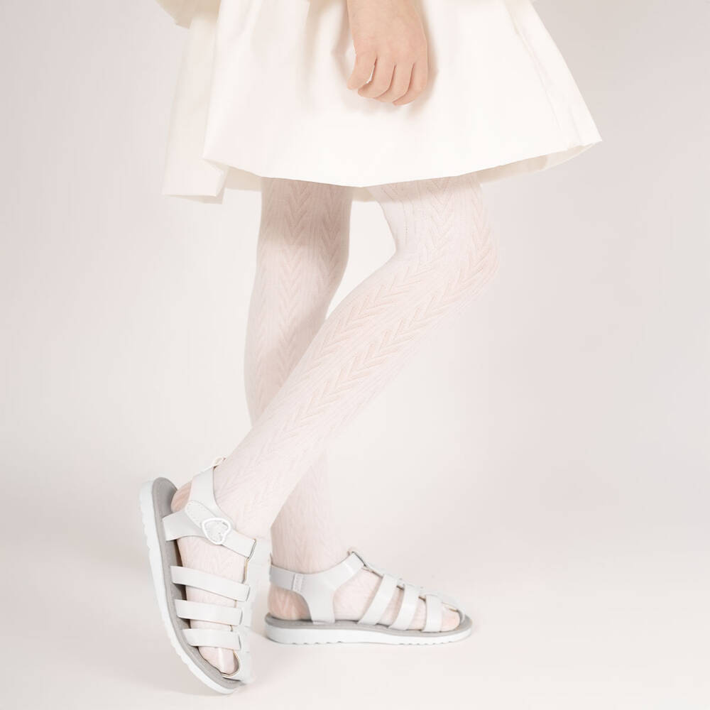 Colanti jacquard pentru fete. Materialul flexibil din care sunt confectionati este placut la atingere si nu irita pielea sensibila a copilului. Modelul prezintă un motiv în oase de hering. Sunt confortabile și nu alunecă. Datorită designului lor la modă și atemporal, ele completează multe stiluri.