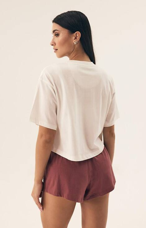 Pijamale de damă cu mâneci scurte. Tricou largi, cu imprimeu.