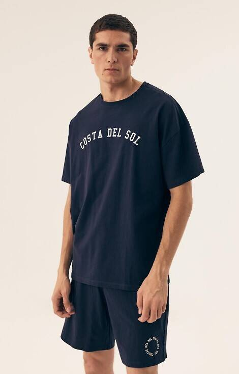 Pijamale pentru bărbați din bumbac de înaltă calitate. Tricou cu maneci scurte si imprimeu.