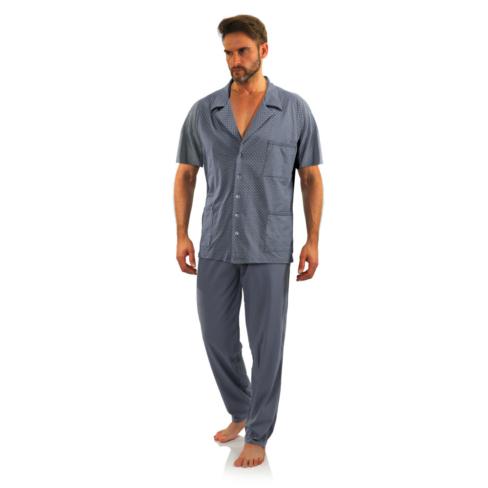 Pijamale bărbați Sesto Senso cu fermoar și mâneci scurte - ancore din grafit
