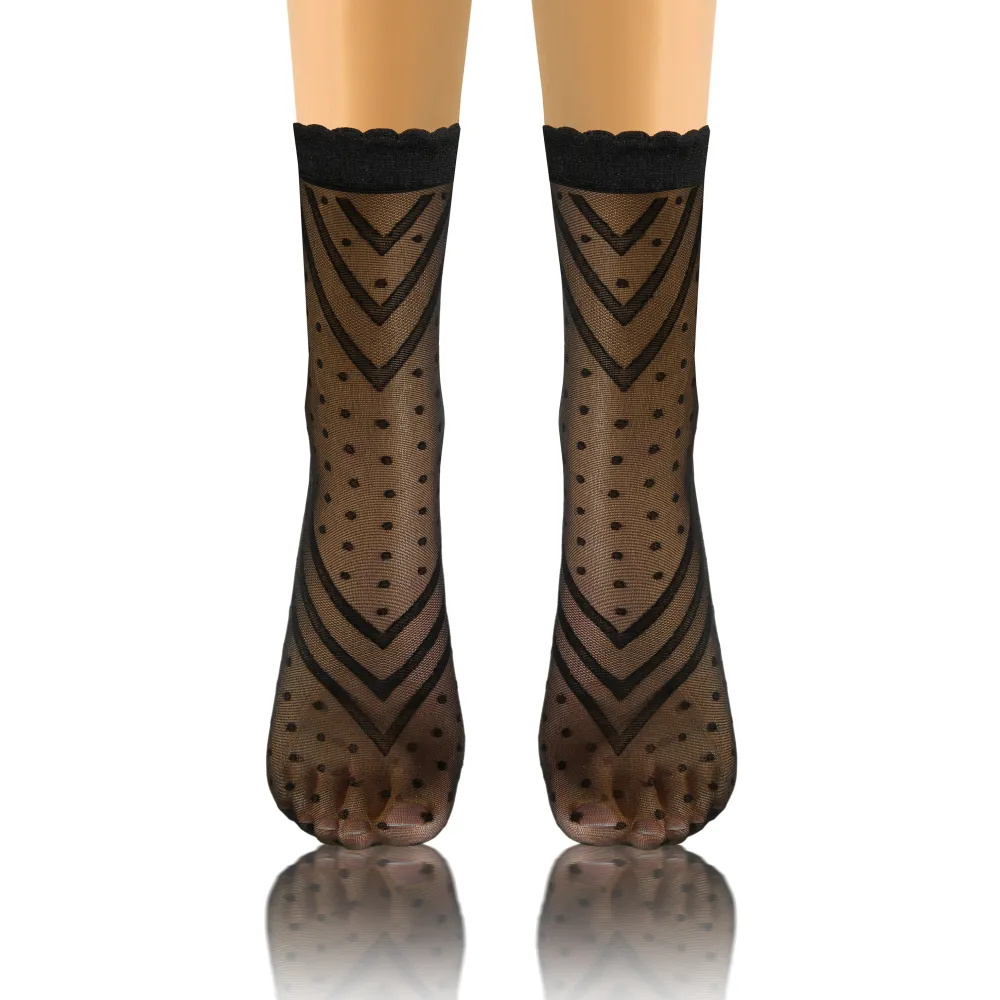 Fabricat din material delicat, flexibil. Se potrivesc perfect piciorului, asigurând confort pe tot parcursul zilei. Designul transparent cu un model subtil le confera un caracter unic, iar lipsa de intarituri pe degete le face sa se potriveasca perfect cu incaltamintea deschisa. Manșeta fără presiune garantează o purtare confortabilă fără senzația de presiune.
