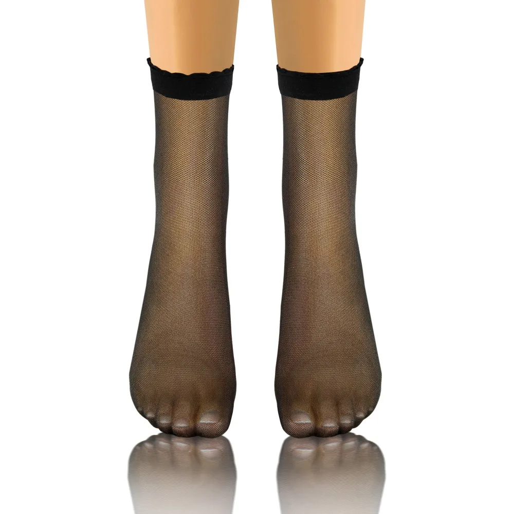 Fabricat din material delicat, flexibil. Se potrivesc perfect piciorului, asigurând confort pe tot parcursul zilei. Designul transparent cu un model subtil le confera un caracter unic, iar lipsa de intarituri pe degete le face sa se potriveasca perfect cu incaltamintea deschisa. Manșeta fără presiune garantează o purtare confortabilă fără senzația de presiune.