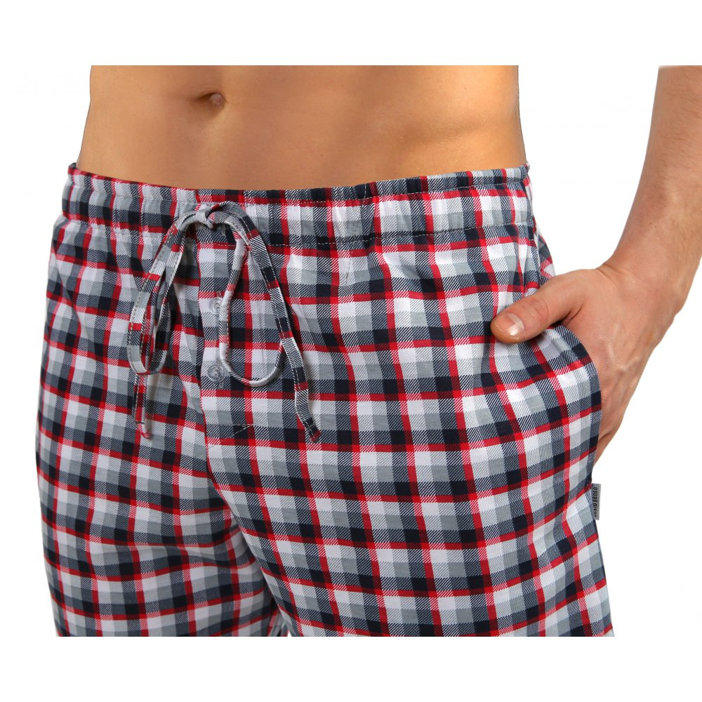 Pantalonii pentru bărbați sunt comozi de purtat și plăcuti la atingere. Au o talie elastică largă, șnur suplimentar, o braț cu doi nasturi și buzunare confortabile pe laterale. Sunt practice și extrem de confortabile, așa că sunt folosite pentru dormit și relaxare acasă. Se caracterizează printr-un model în carouri la modă.