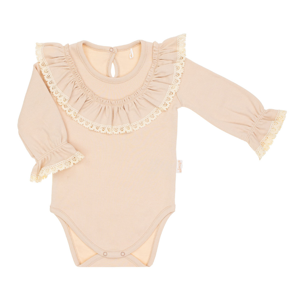 Body cu maneca lunga pentru fete, din bumbac 100%. Materialul are certificatul Oeko-Tex Standard 100 Trustworthy Textiles. Produsul este prins la spate și la picioare cu știfturi fără nichel, asigurând confort la îmbrăcare.