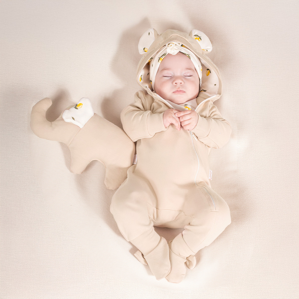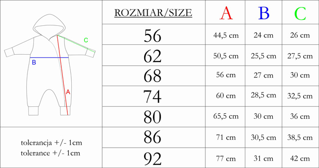 Întrebați despre produsUn clovn de trening, din bumbac hanorac bej cu o cantitate mica de elastan. Perfect pentru un carucior sau scaun auto. Are manșete pe mâneci, picioare și glugă cu urechi. Datorita faptului ca este fabricat din bumbac certificat, copilul tau se va simti confortabil in el. Salopeta este prinsă cu un fermoar convenabil - acest lucru va face să vă îmbrăcați copilul mai ușor.