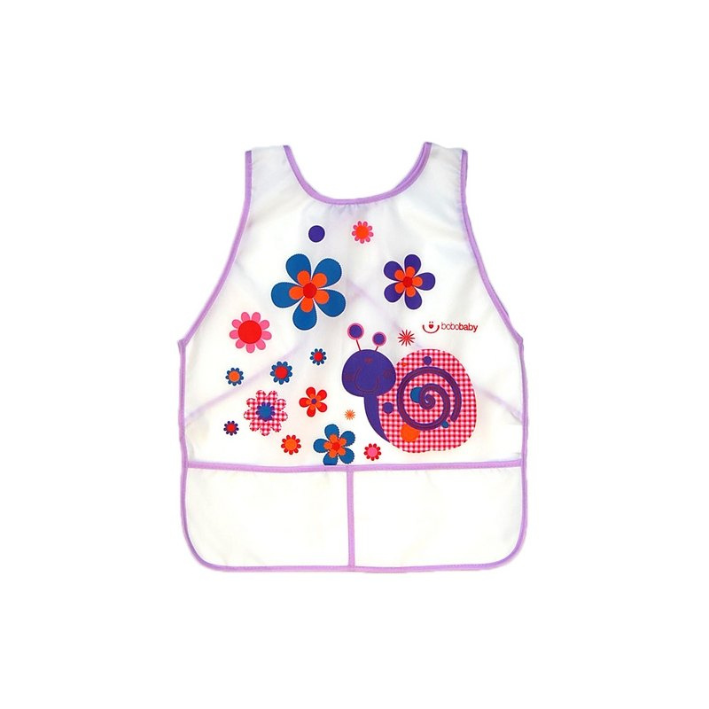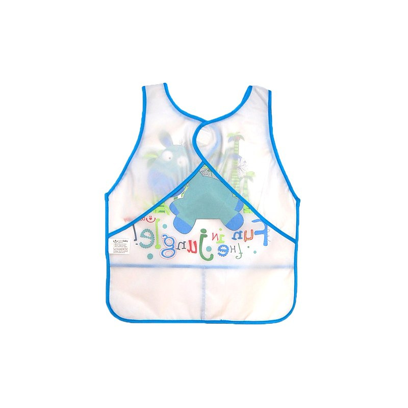 Salopeta este realizata din folie PEVA, care previne inmuierea murdariei in haine. Compozitie sigura - baveta fara BPA. Prins cu Velcro, are un buzunar împărțit în două părți.