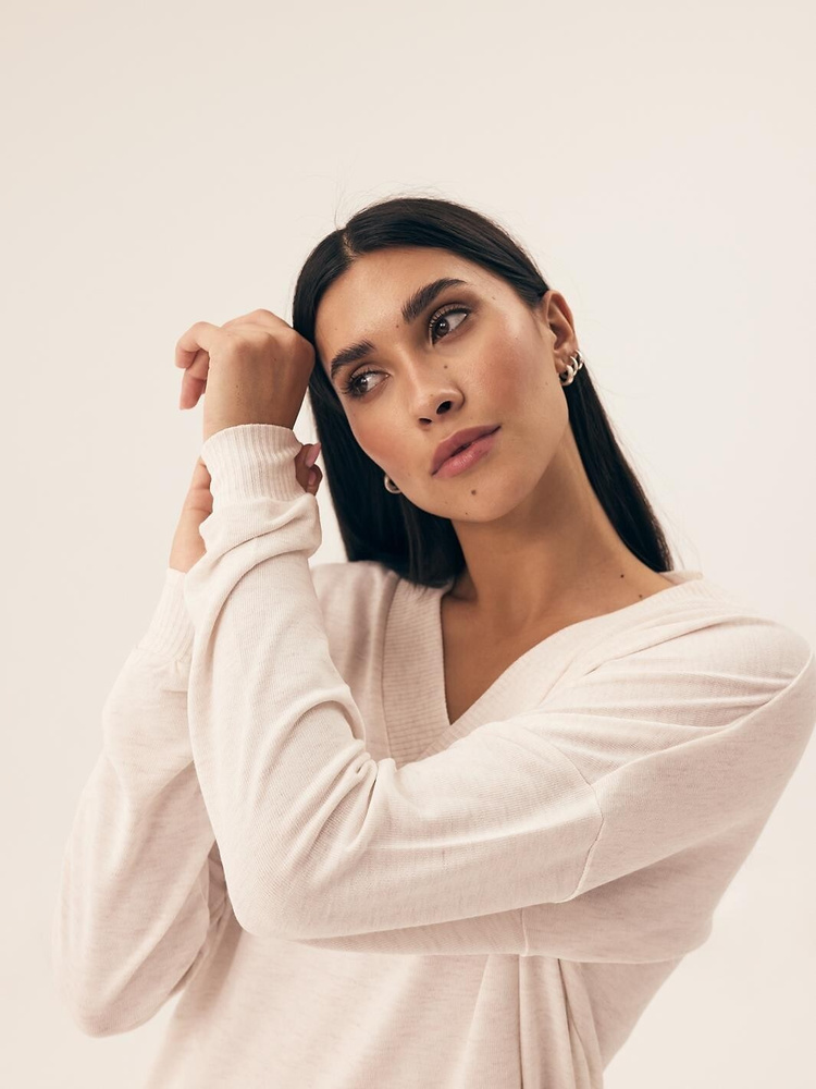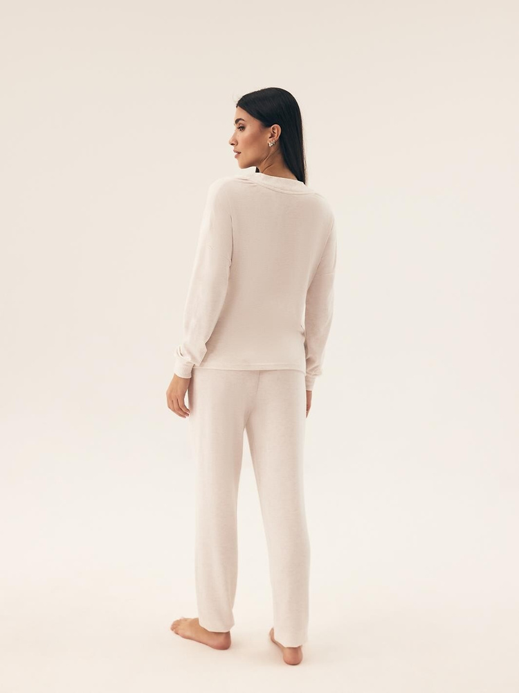 Pijamale de dama, ideale si ca imbracaminte pentru casa. Bluză cu mâneci lungi, decolteu în V