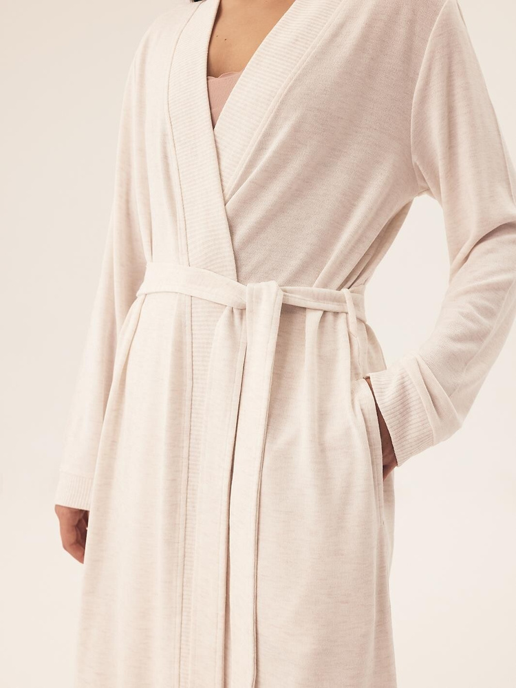 • Halat de baie pentru femei Legat în talie Lungime până la genunchi