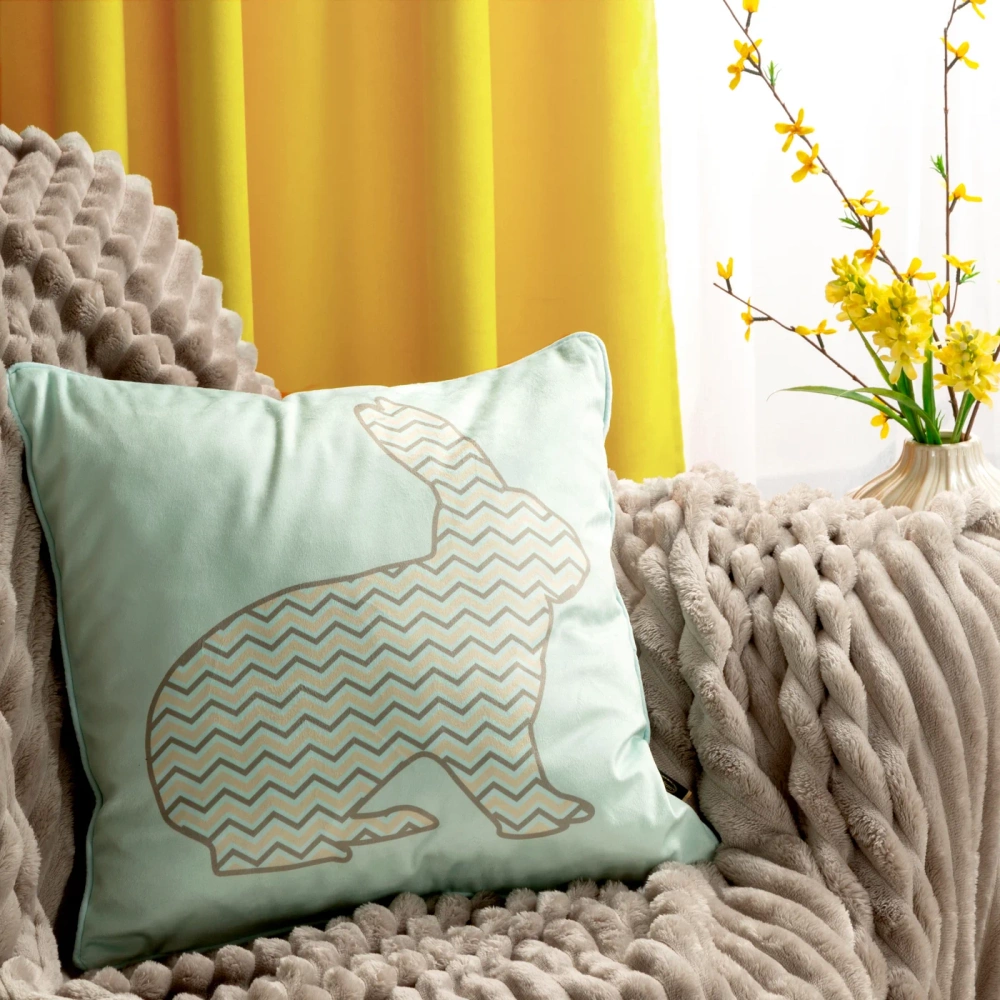 Fata de perna Primavara 1 de Paste din catifea decorata cu imprimeu iepuras Eurocortains menta