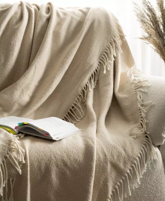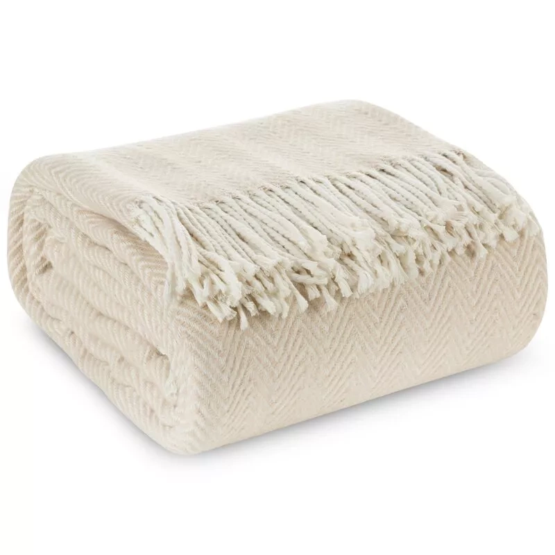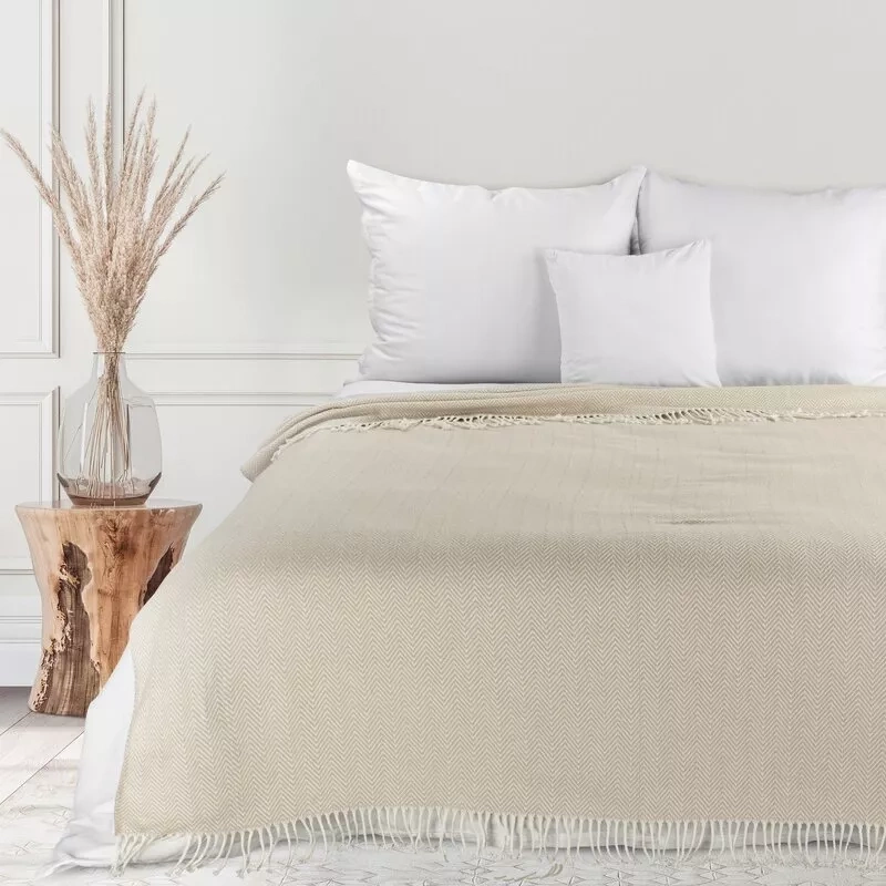 Plaid 7 Pătură cuvertură de pat cu franjuri Eurodraperii bej