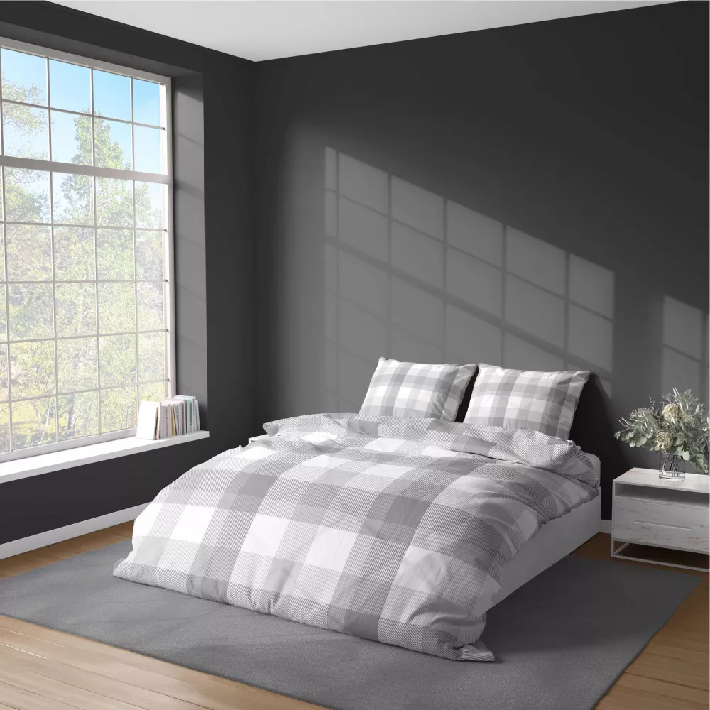 5040 A Lenjerie de pat din microfibră în carouri gri Detexpol