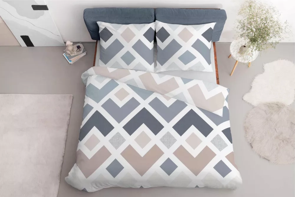 5026 A Lenjerie de pat microfibră cu geometrie Detexpol albastră