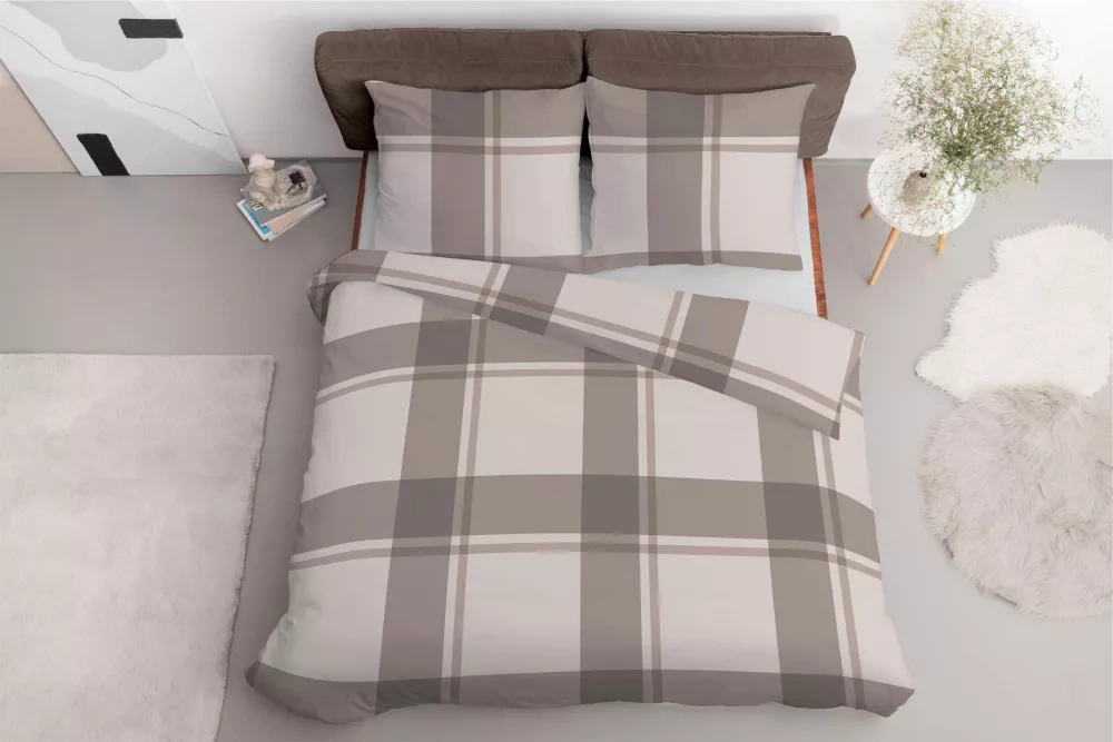 5218 B Lenjerie de pat în carouri de satin bej Detexpol