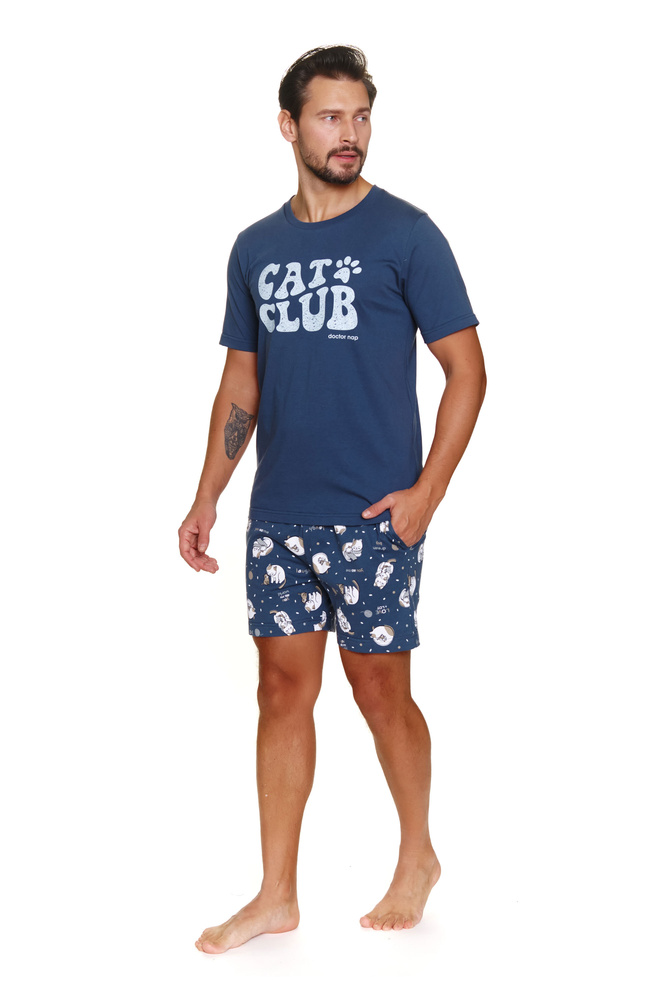7204 Pijamale pentru bărbați Doctor Nap „Cat club” - albastru intens