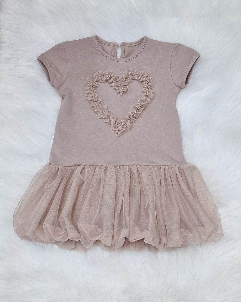 Rochie feminină cu o fustă din tul. Croiala liberă nu restricționează mișcarea.