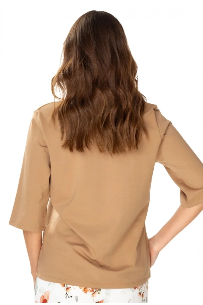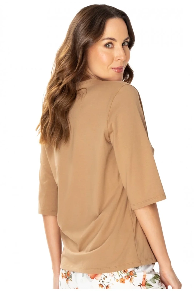 O propunere ideală pentru femeile care prețuiesc confortul, calitatea și eleganța chiar și în intimitatea casei lor. Oferă moliciune plăcută, respirabilitate și confort excelent la purtare. Acest material permite pielii să respire, ceea ce face ca bluza să fie o alegere excelentă pentru orice anotimp. Datorită mânecii 3/4, bluza va funcționa bine atât în zilele mai reci, cât și în cele mai calde.