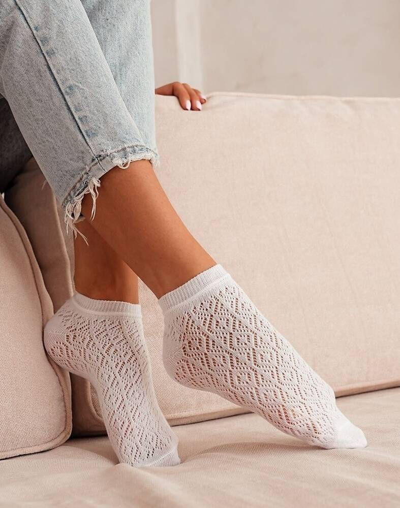 Șosete de damă ajurate din bumbac de înaltă calitate, cu manșetă fără presiune.