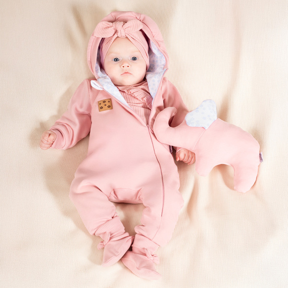 Întrebați despre produsUn clovn de trening, din bumbac hanorac roz cu o cantitate mică de elastan. Perfect pentru un carucior sau scaun auto. Are manșete pe mâneci, picioare și glugă cu urechi. Datorita faptului ca este fabricat din bumbac certificat, copilul tau se va simti confortabil in el. Salopeta este prinsă cu un fermoar convenabil - acest lucru va face să vă îmbrăcați copilul mai ușor.