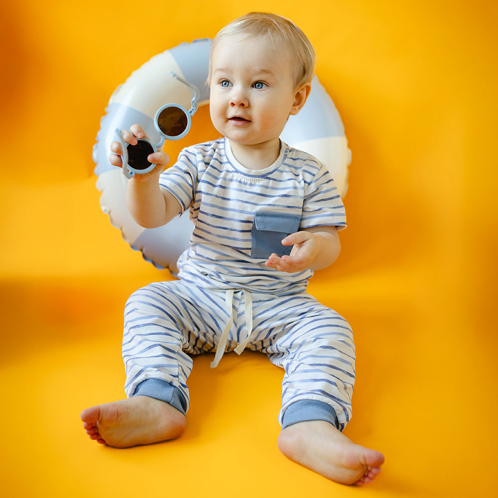 In talia pantalonilor este o banda elastica care nu prinde burtica bebelusului.