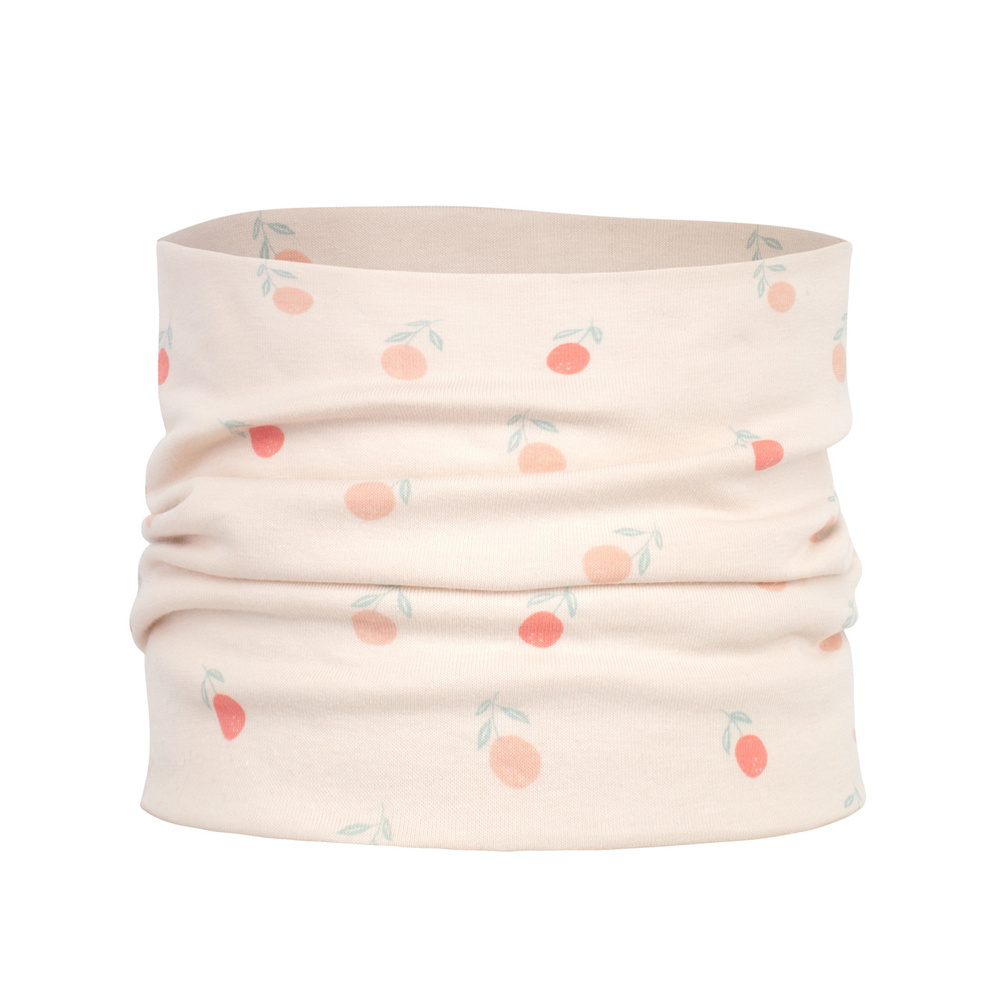 Esarfa subtire este confectionata din material subtire si flexibil de culoare calda, piersici, decorata cu imprimeu de fructe de vara. Materialul flexibil face imbracarea esarfei cu adevarat usoara. Perfect pentru plimbările de toamnă și primăvară și excursii cu bicicleta, protejând gâtul copilului dumneavoastră împotriva frigului și a vântului. Este produs în Polonia.