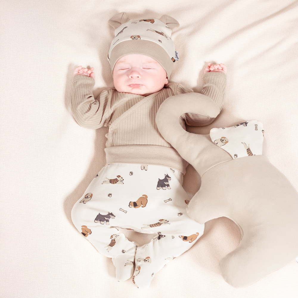 Salopete confortabile și moi pentru băieți, realizate 100% din bumbac aerisit. Calitatea înaltă a materialului a fost confirmată de certificatul Oeko-Tex Standard 100 Trustworthy Textiles. Costumele de dormit au o croială lejeră și o talie ușor coborâtă pentru a găzdui un scutec și au un șnur larg, fără presiune, în talie, asigurând confort deplin pentru bebeluș.