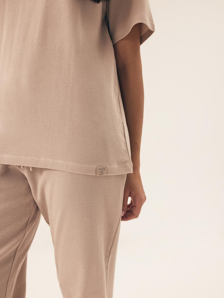 Pijamale de damă cu mâneci scurte. Tricou largi, cu imprimeu.