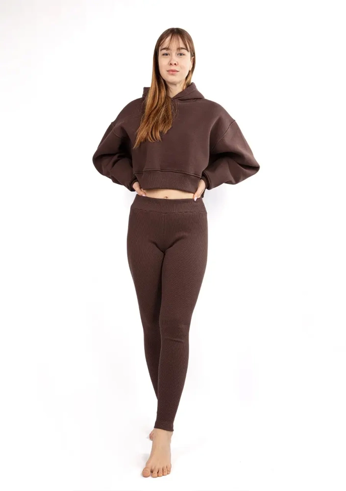 Setul este format din jambiere din bumbac cu volane pe spate si un hanorac scurt, calduros, care se potriveste perfect in ansamblu. Setul este perfect pentru activitatile de zi cu zi, dar si pentru relaxarea acasa atunci cand vrei sa te simti confortabil si stilat.
