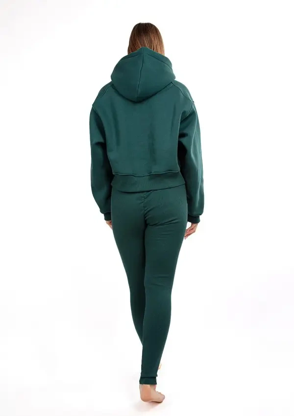 Setul este format din jambiere din bumbac cu volane pe spate si un hanorac scurt, calduros, care se potriveste perfect in ansamblu. Setul este perfect pentru activitatile de zi cu zi, dar si pentru relaxarea acasa atunci cand vrei sa te simti confortabil si stilat.