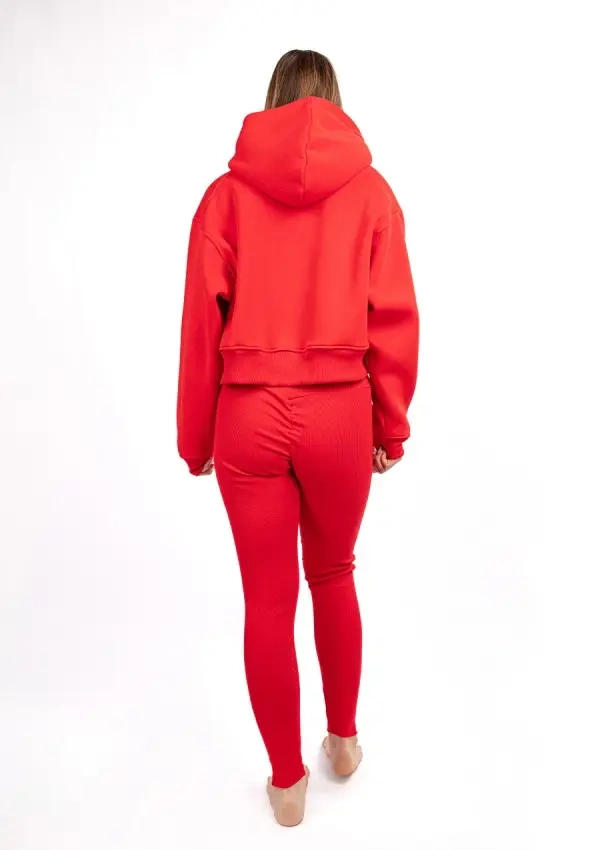 Setul este format din jambiere din bumbac cu volane pe spate si un hanorac scurt, calduros, care se potriveste perfect in ansamblu. Setul este perfect pentru activitatile de zi cu zi, dar si pentru relaxarea acasa atunci cand vrei sa te simti confortabil si stilat.
