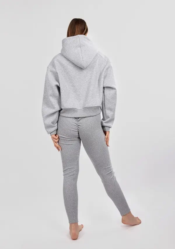Setul este format din jambiere din bumbac cu volane pe spate si un hanorac scurt, calduros, care se potriveste perfect in ansamblu. Setul este perfect pentru activitatile de zi cu zi, dar si pentru relaxarea acasa atunci cand vrei sa te simti confortabil si stilat.