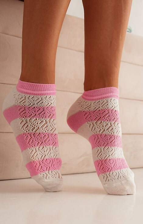 1504 Picioare ajurate damă în dungi Milena alb-roz