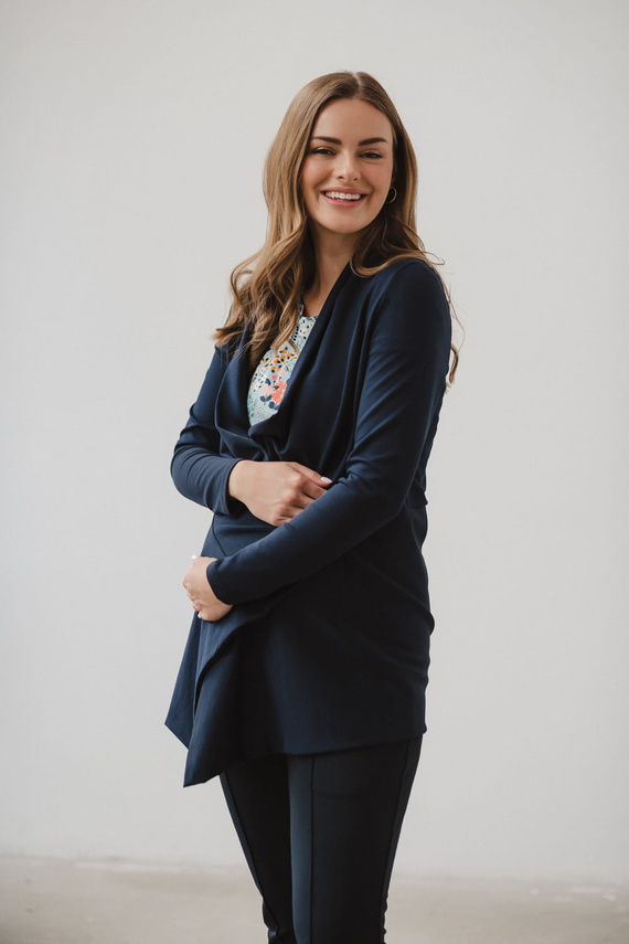 Întrebați despre produsElegant, confortabil și versatil, cardiganul Mama Wrap este un element esențial al garderobei unei femei însărcinate și postpartum. Datorită croiului său largi și lipsei fermoarelor și nasturii, cardiganul poate fi folosit și ca husă elegantă pentru alăptare ori de câte ori aveți nevoie de mai multă discreție sau pentru a limita cantitatea de stimuli care ajung la bebeluș în timpul hrănirii. Se potrivește perfect cu o cămașă și pantaloni eleganți, adăugând un caracter profesional, dar confortabil întregului look.