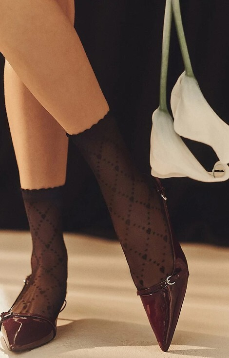 Ciorapi de dama de 20 de denari decorati cu model geometric.  Au o manșetă confortabilă, fără presiune.