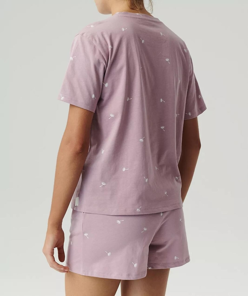 Pijamale de damă din material moale, plăcut la atingere. Tricou cu maneca scurta. Setul include pantaloni scurți, largi, cu buzunare.