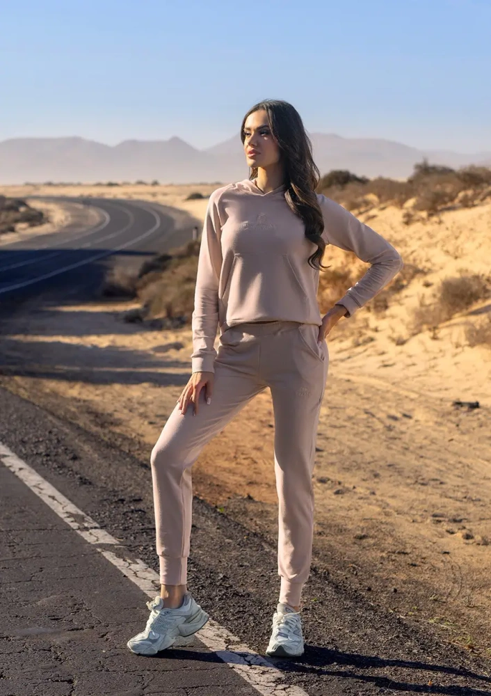 Un set de trening foarte confortabil. Este alcătuit dintr-un hanorac practic cu glugă și broderie în mijloc și pantaloni comozi de trening cu manșete, care împreună creează un întreg coerent, stilat. Pantalonii au șnur pe picioare, două buzunare în față și o bandă elastică în talie. Setul perfect pentru un stil mai casual! Deci, fie că mergi la sală sau doar te relaxezi acasă, treningurile noastre sunt alegerea perfectă pentru orice activitate.