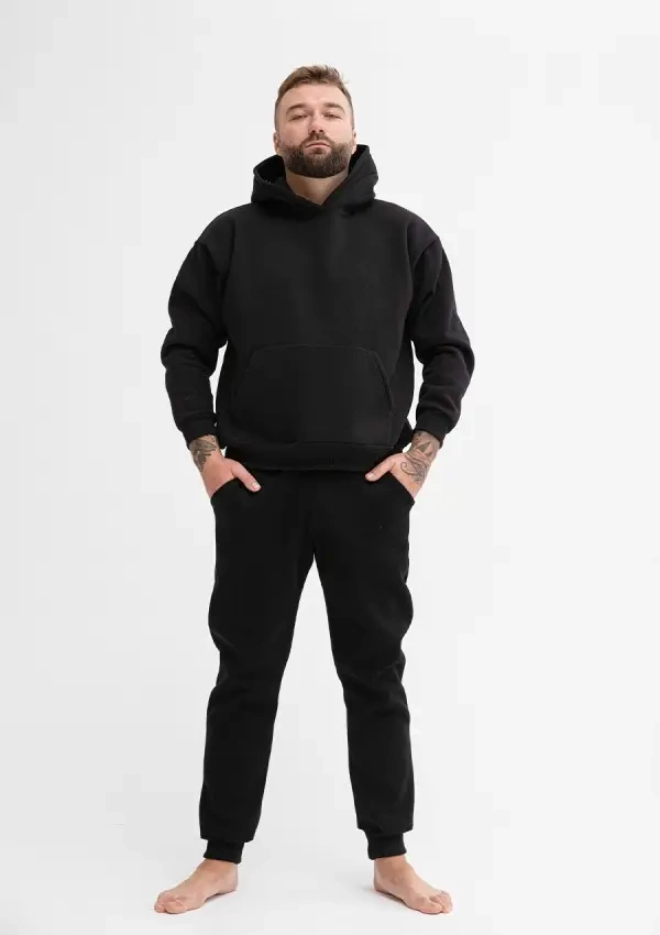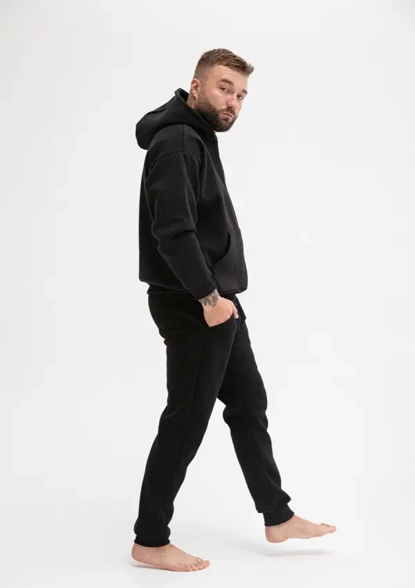 Set trening din bumbac moale. Este alcătuit dintr-un hanorac cald din bumbac, cu glugă și pantaloni de trening care oferă libertate deplină de mișcare. Pantalonii au mansete practice in partea de jos, ceea ce le permite sa fie ajustate la silueta si ofera confort suplimentar in timpul activitatilor de zi cu zi. Acesta este un set care îți va oferi confort atât atunci când te relaxezi acasă, la plimbare sau în timpul activităților în aer liber.