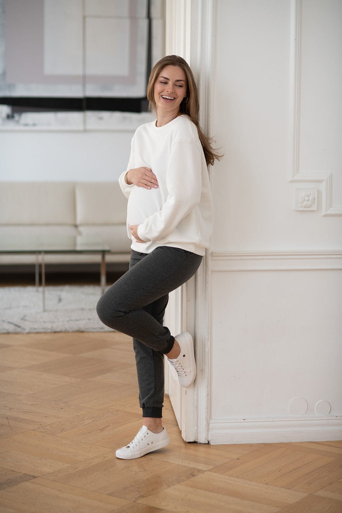 Hanoracul perfect pentru maternitate - croiala sa larga, supradimensionata a fost conceputa pentru a se adapta corpului tau in schimbare. Indiferent că te afli în primul, al doilea sau al treilea trimestru, hanoracul nu se strânge și îți oferă confort maxim. Arată grozav atât cu jambiere de maternitate, cât și cu pantaloni cu talie înaltă. După naștere, va funcționa ca un hanorac confortabil pentru alăptare și pentru purtarea zilnică. Tricotaje de cea mai înaltă calitate, respirabile, care au trecut testele riguroase Oeko-Tex Standard 100 - datorită acestora, hanoracele de maternitate și de alăptare sunt moi și plăcute la atingere atât pentru mamă, cât și pentru bebeluș.