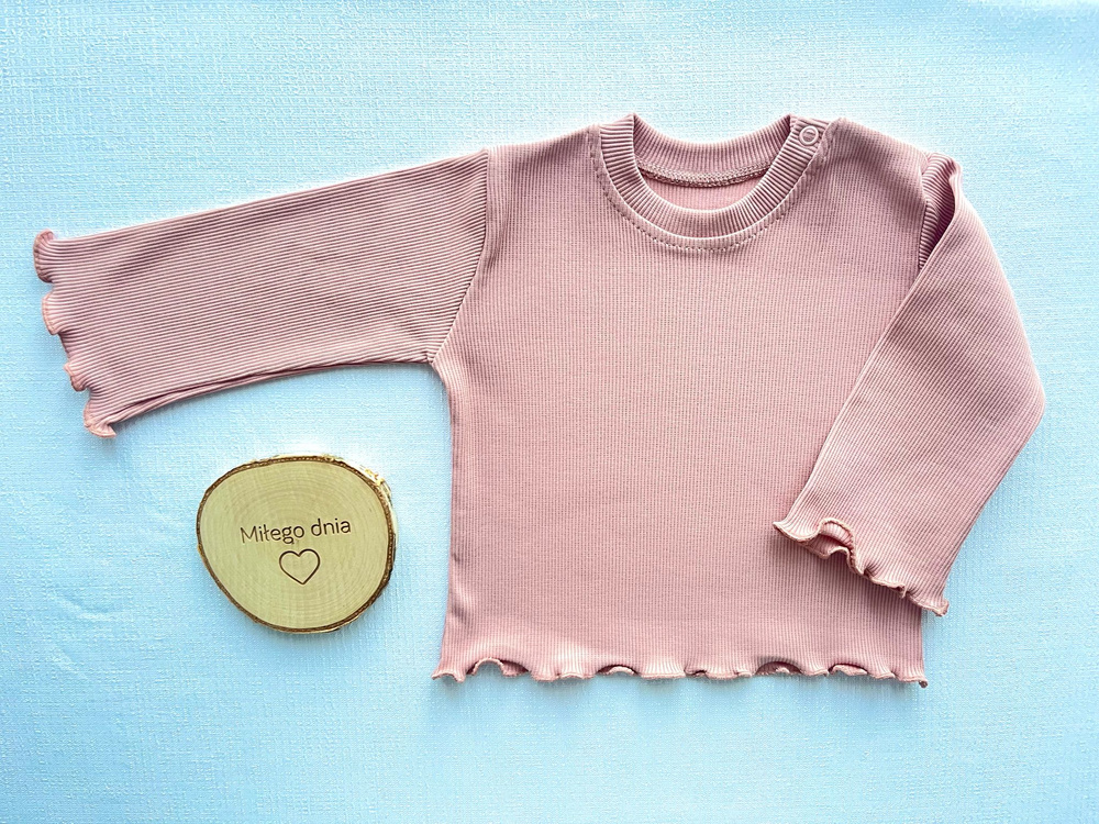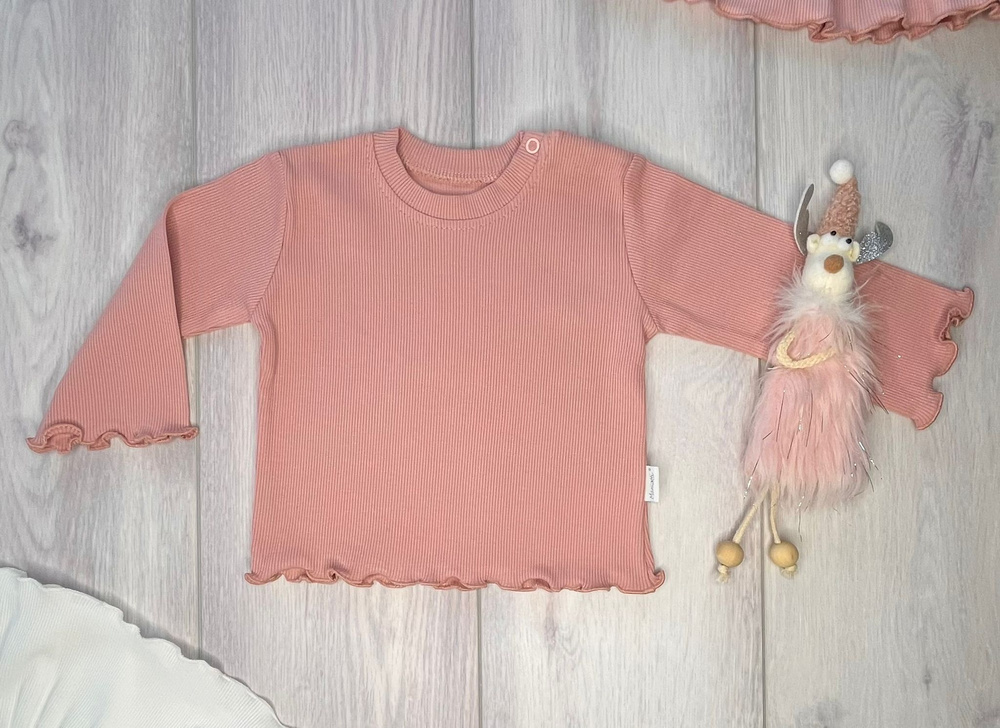 Bluză fete din bumbac cu mâneci lungi. Are un volan fermecător în partea de jos și pe mâneci.