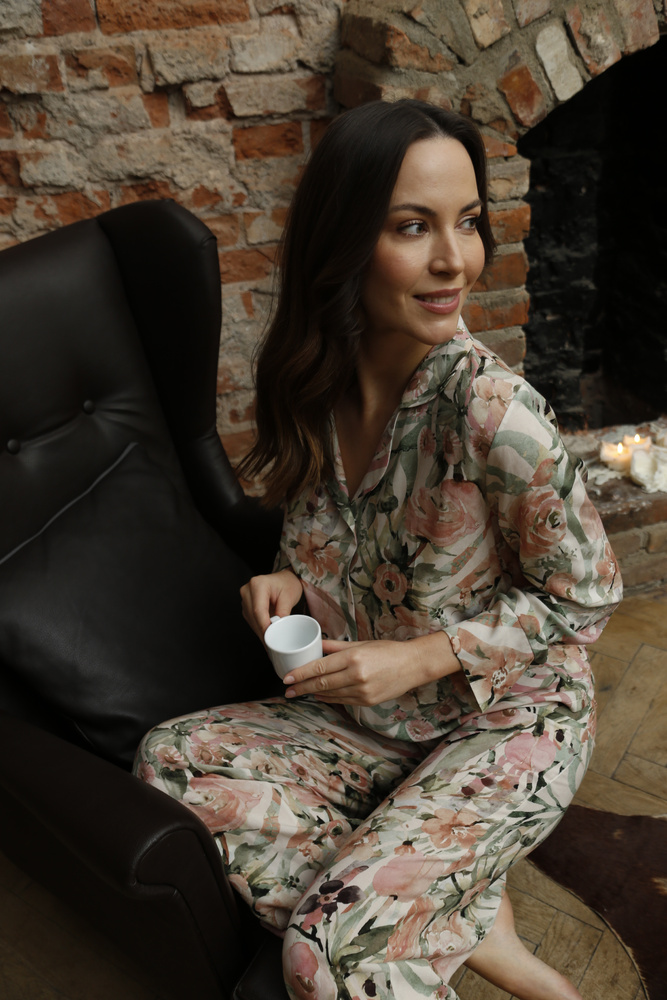 O alegere ideală pentru femeile care apreciază confortul și, în același timp, doresc să se simtă excepțional de stilate. O cămașă cu mâneci lungi, cu nasturi, concepută pentru confort și libertate de mișcare. Pantalonii lungi completează setul, asigurând confort maxim în timpul somnului. Țesătura sa moale și aerisită este plăcută pielii, iar croiala lejeră garantează libertatea de mișcare. Materialul natural face pijamalele blânde pentru piele, asigură o circulație adecvată a aerului și confort termic pe tot parcursul anului. Perfect pentru dormit, dar și excelent pentru zilele leneșe de acasă.